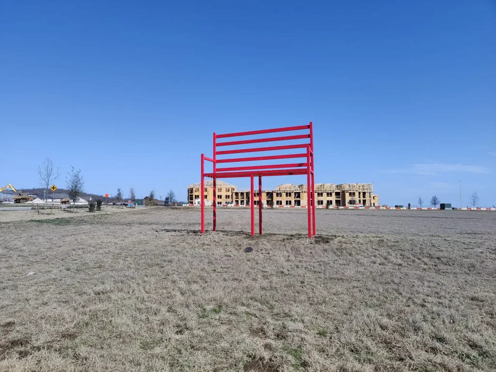 In the April 2022 newsletter, CoHere described the Giant Red Bench as a new way for the community developers to signify upcoming development in Easton Park, and more benches are expected.