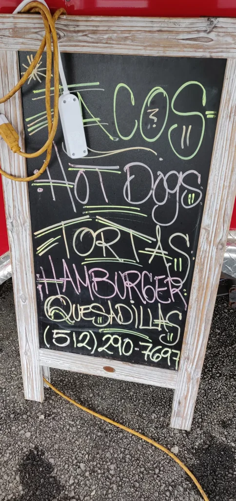This Mexican food truck features tacos for breakfast, lunch, dinner, and also has hamburgers and hot dogs. They also server cold snacks.