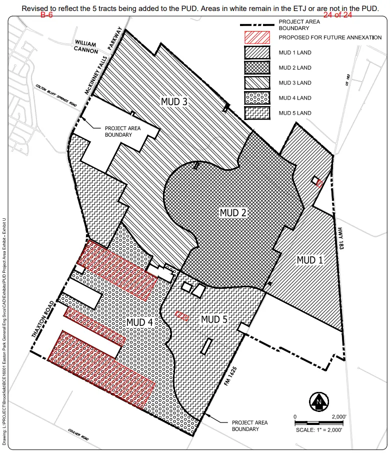 Pilot Park is a subdivision along McKinney Falls/Thaxton Road. This subdivision will have only two entrances from McKinney Falls Dr., and will not connect to either KB Homes subdivision to the North, or any road connection to the rest of Easton Park. There will be park and trail connections between Pilot Park and Easton Park.